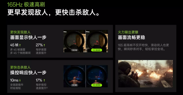 165Hz则可以看作是120Hz基础上进一步优化的“进阶版”。它的每帧显现时分约为6.06ms,比120Hz又裁减了约2.27ms。天然这看似仅仅毫秒级的差距,但在高速畅通的竞技游戏中——比如《CS2》《瓦罗兰特》或《祈望前卫》——这额外的2-3ms蔓延抵制,息争每秒多出45个画面的信息量,能够让敌东谈主迁移轨迹更连贯,准星定位更精确。