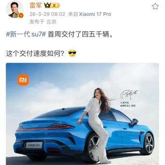 小米新SU7第一周就录用4000-5000辆,雷军痛心入骨。3月29日一大早,雷军忍不住书记了一大音信,新的小米SU7首周就录用了四五千辆车,还快意的问世界这个录用速率若何?