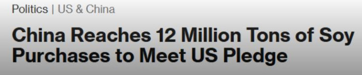 当时双方达成了一份“休战协议”,其中有一项关键条款:中方承诺在今年2月28日之前,采购至少1200万吨美国大豆。