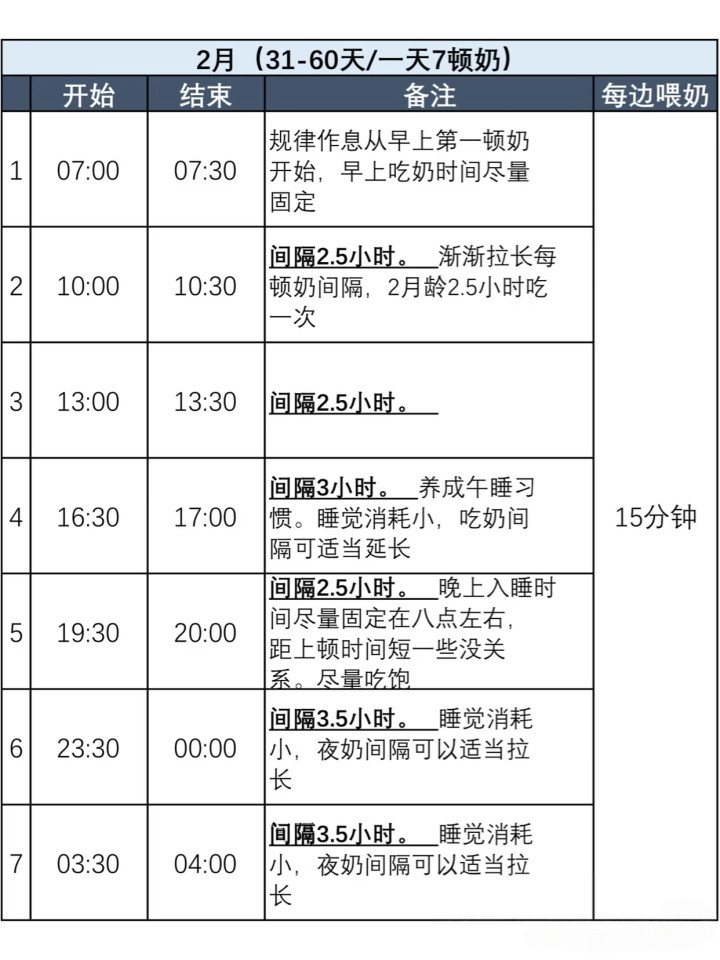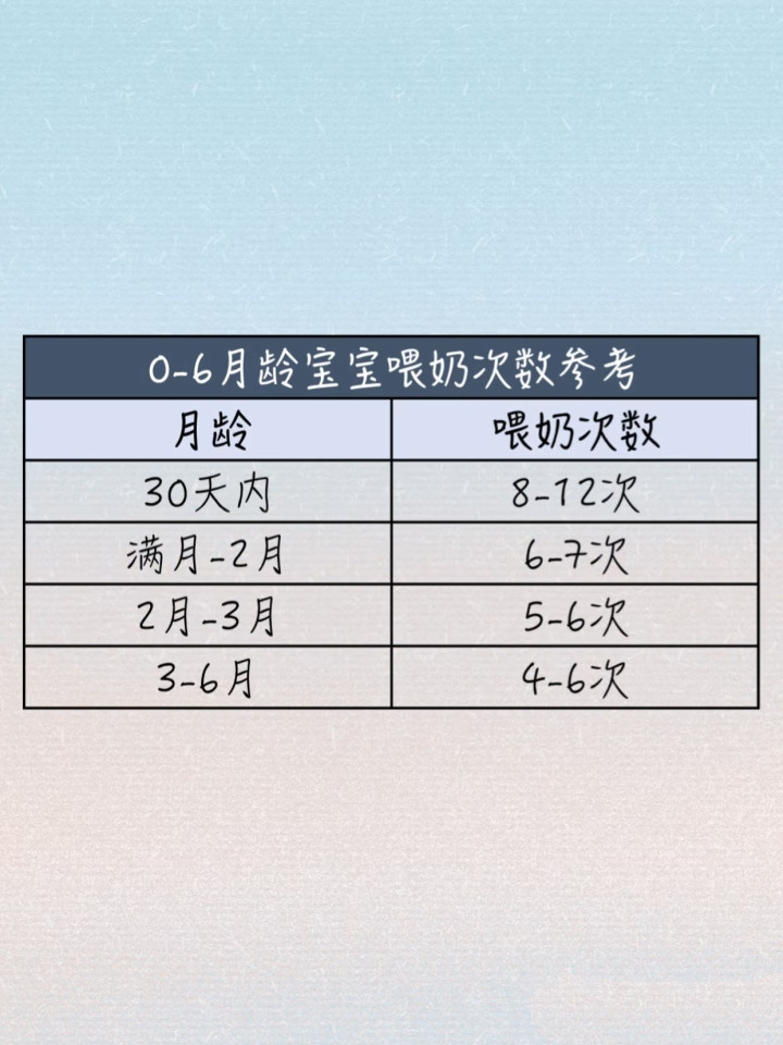 (这里插入你的图片,清亮展示各月龄的喂养本事、次数和每次喂养时长)