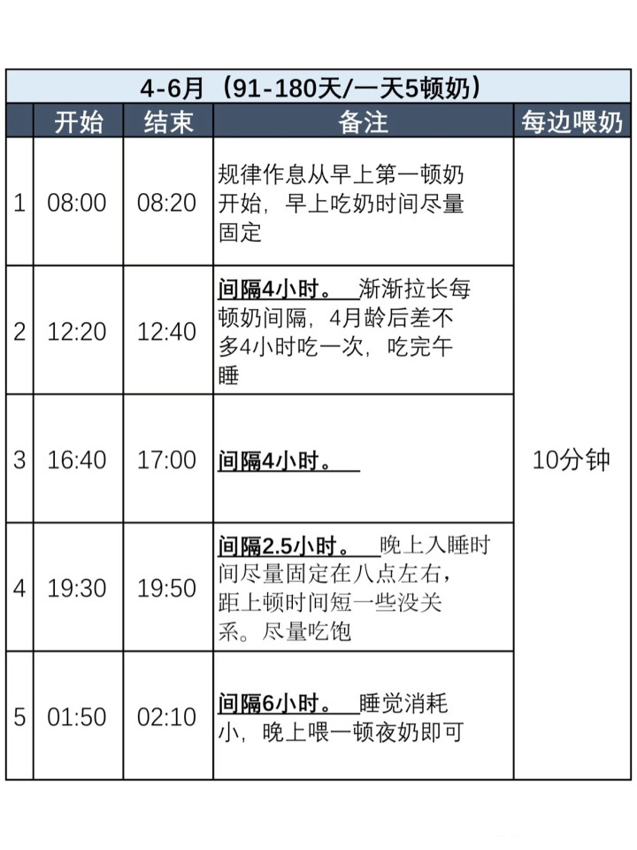 · 合并喂养:薄暮奶和睡前奶的本事会越来越接近,当它们的本事点重合时,就不错当然合并成一顿了。这么,喂养顿数就从6顿减少到了5顿。
