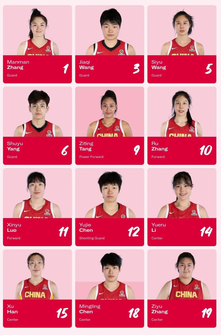 现在,中国女篮的12人大名单已出炉,在外洋联赛效率的两大中锋韩旭、李月汝追想,与“小至人”张子宇构成强力内线组合,12名参赛队员为张曼曼、王佳琦、王想雨、杨舒予、唐子婷、张茹、罗欣棫、陈玉婕、李月汝、韩旭、陈明伶、张子宇。