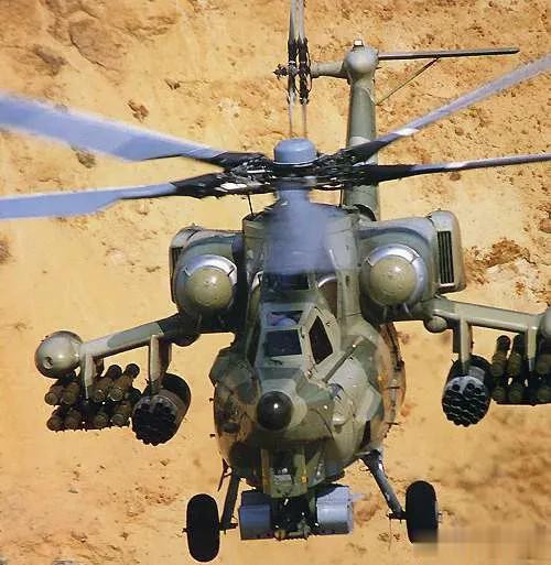 火力是米-28最恐怖的地方,被誉为“坦克的终极恶梦”。30mm 2A42自动机炮,备弹258发。反坦克导弹起首使用9M127,射程10km,破甲深度1000mm,可击穿复合反馈装甲。配备R-73红外制导空空导弹,80mm无制导火箭弹巢。同期可拓展挂载500kg级航空炸弹、23mm机炮吊舱、30mm榴弹辐射器吊舱。其后的升级版米-28NM、米-28UB更强,加装N025“努拉”雷达,能同期追踪10个贪图,能用“菊花”双模导弹(雷达/激光双制导),探伤距离更远,热像更明晰。