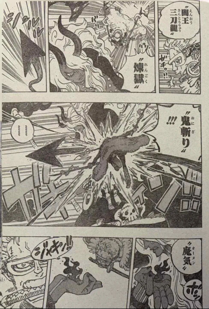 事到如今,索隆也坐不住了,他平直对伊姆使出了大招:阎王.三刀流.真金不怕火狱鬼斩,可是伊姆看起莅临危不乱,轻抬右手,手掌中出现了一团名为“魔气”的玄色火焰,随后向着索隆的脸部弹去。
