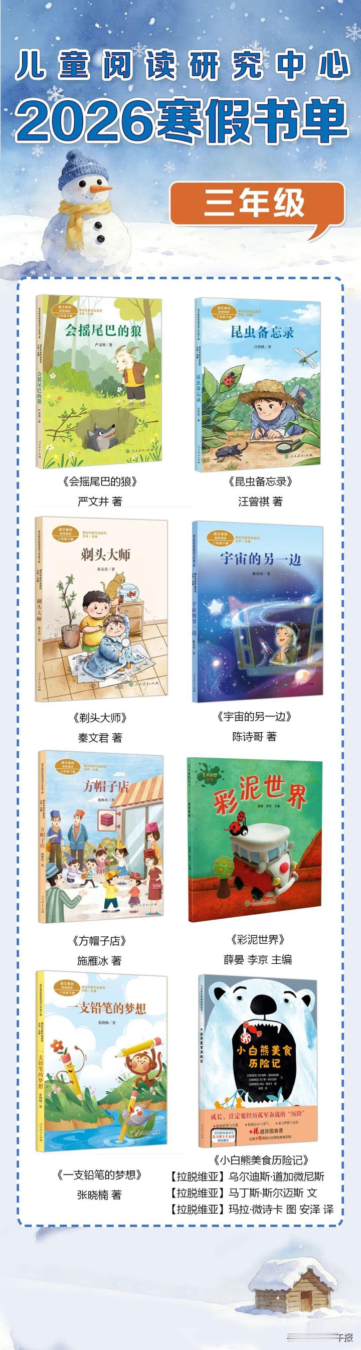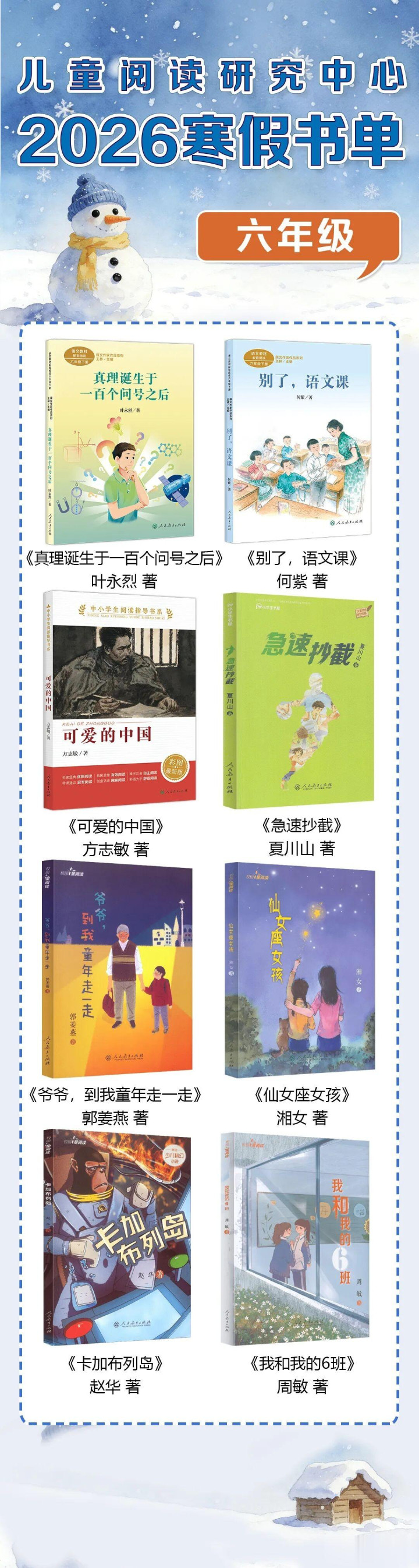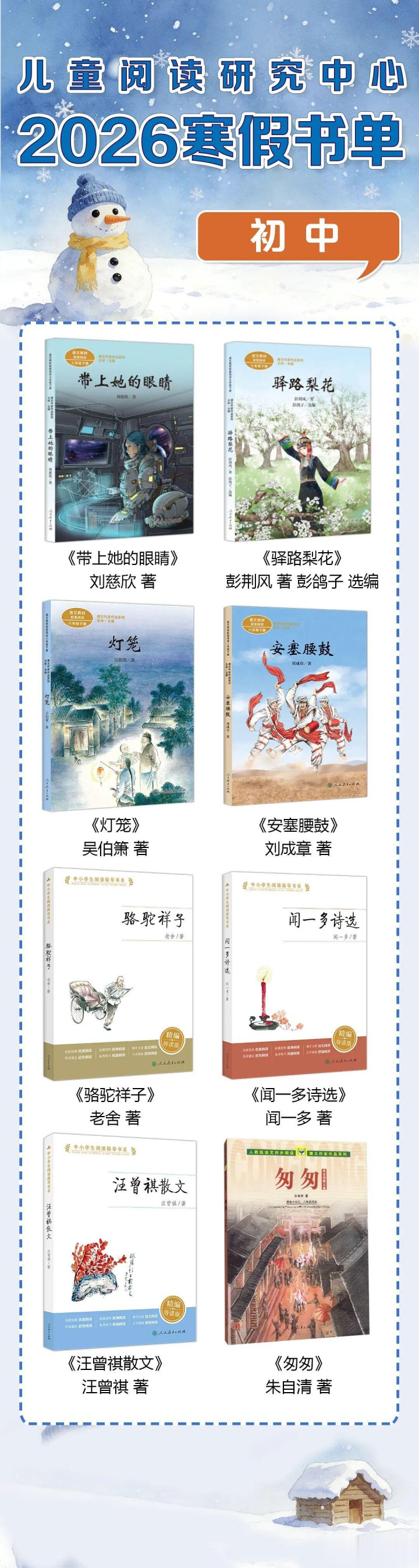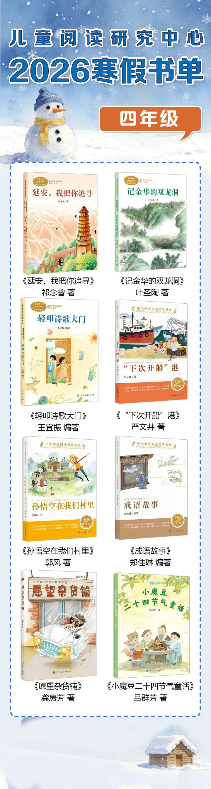 寒假在即,适逢《全民阅读促进条例》公布实施,人教社儿童阅读研究中心为同学们拟定了1—9年级寒假阅读书单,让大家尽情阅读!