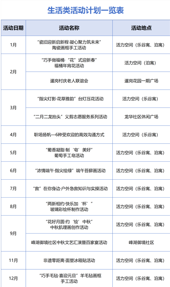 生涯类14场:手工制作、义剪办事等经典步地,新增亲子互动、邻里联谊行径,烟火气与幸福感径直拉满。