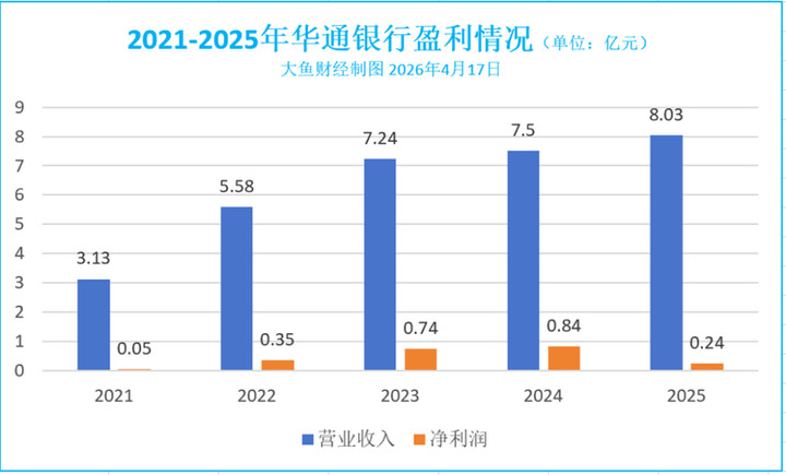 金钱界限方面,收尾2025年末,华通银行金钱野心349.37亿元,同比下落4.93%;计划事迹方面,2025年华通银行齐备交易收入8.03亿元,同比增长7.08%;齐备净利润0.24亿元,同比大幅下落70.93%。