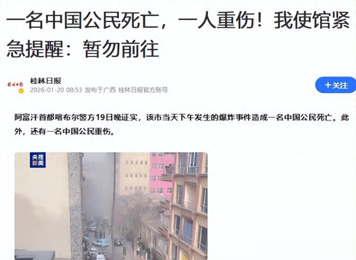 比如爆炸发生后,我们驻阿富汗大使馆敦促中国人别来。