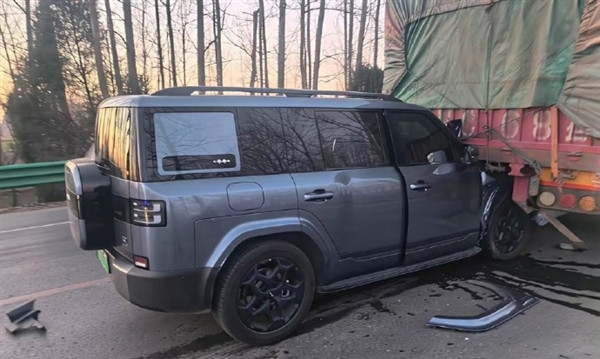 据快科技,近日,江西高速路段发生一起事故,一辆方程豹钛7以100多码时速行驶时因前方货车急刹而减速至70多码钻入货车尾部。从现场照片看,方程豹钛7车头嵌入货车尾部,车身右侧有明显碰撞痕迹,但整车A柱保持完好未变形,保险杠硬度高,车主未受碰撞伤害。