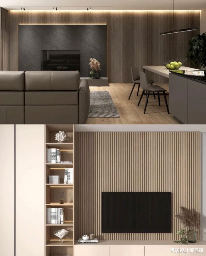 前几年木格栅配景墙火得一塌蒙眬,竖条的木条一根一根排开,有脉络感,有竖向拉伸恶果。
