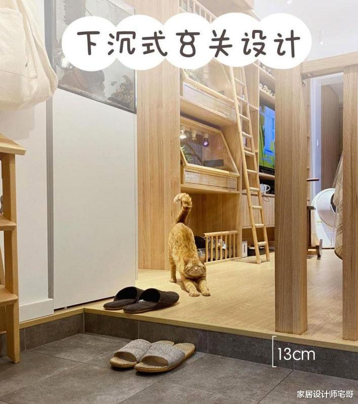 下千里式玄关有段技术也很火,许多东谈主看了之后也思在客厅作念一个下千里式玄关,落尘区和换鞋差别离,灰尘不进家内部,看起来很高档。
