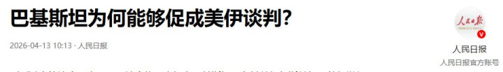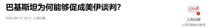 巴基斯坦为何概况促成好意思伊谈判? 2026-04-13 10:13·东说念主民日报